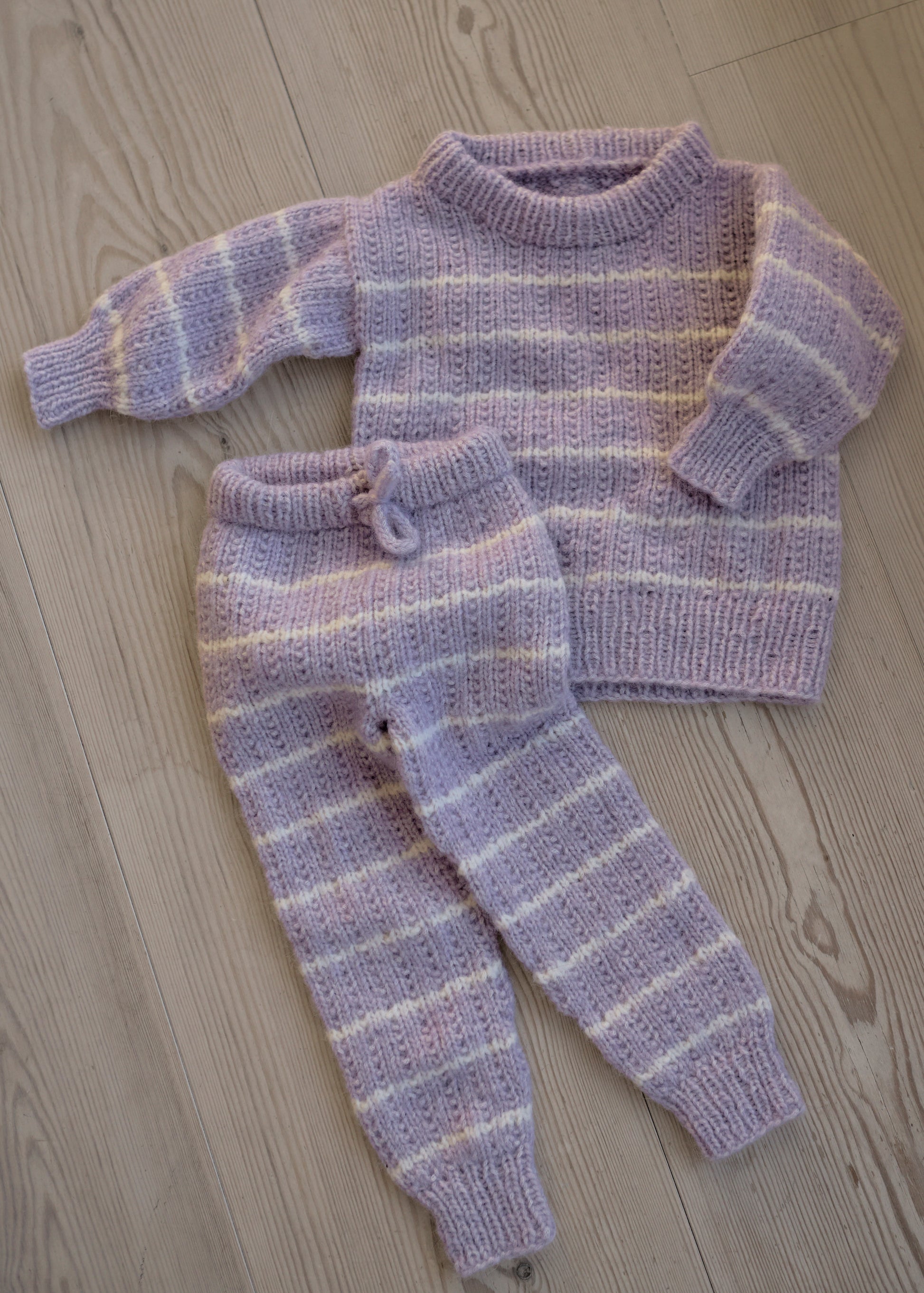 De klassiske stripene gir et tidløst uttrykk, og settet kan kombineres i alle de vakre fargene i Fluffy-serien – fra duse jordtoner til myke pasteller. Et enkelt, men gjennomført design som både ser fint ut og føles behagelig mot huden. Perfekt til hverdag og barnehage – laget for små eventyrere i myk luksus. Kos deg med strikkingen! ❤️